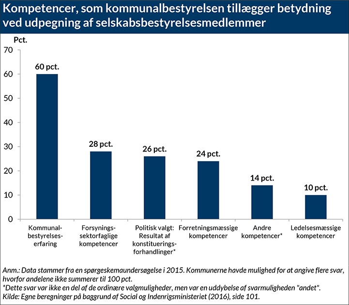 Anvendelsen af bestyrelsesposter i kommunale selskaber som led i konstitueringer og til at skabe aflønning af almindeligt politisk arbejde risikerer at gå ud over effektivitet og ledelse af kommunalt ejede selskaber. Ifølge produktivitetskommissionen er der et betydeligt effektivitetspotentiale i forsyningssektoren. Generelt strider offentligt ejerskab mod behovet for armslængde mellem drift, indkøb og regulering, og manglende kompetence og fokus i bestyrelserne kan forstærke problemet. Det taler for på sigt, at afhænde det kommunalt ejede forsyningsselskab (FH).